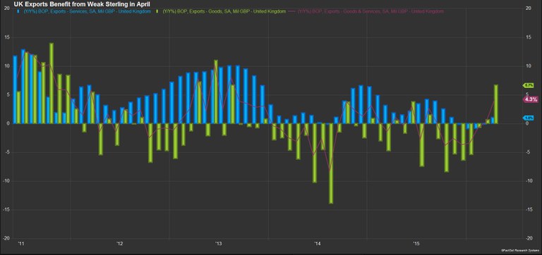 Although the depreciation of the British pound helped to boost UK exports in April, the picture may be completely different if the UK is faced with a myriad of trade negotiations after next week’s vote.
